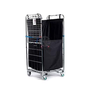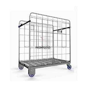 The ergonomic unit features a half drop-down gate on each side and is ideal for merchandising operations in retail locations where space is at a premium.